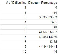 4-dificulty spread -> 2.5x multiplier; 37.5% discount from the base multiplier of 4x